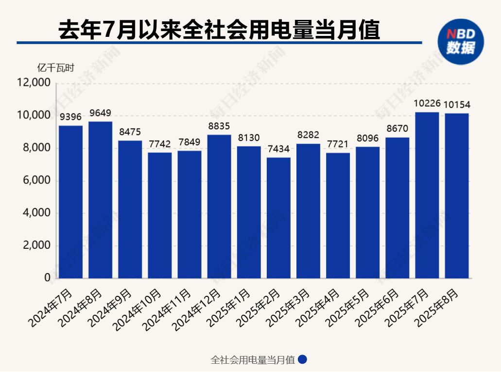 7月和8月份,我国全社会用电量连续两个月超万亿千瓦时