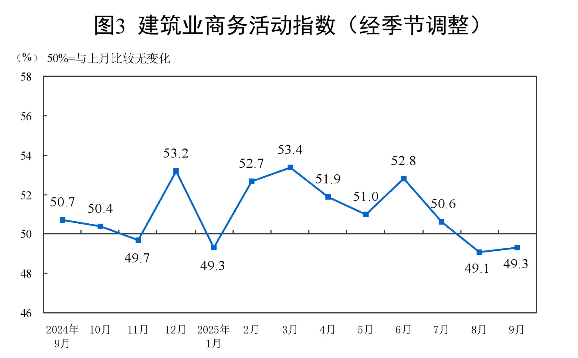 9月建筑业商务活动指数为49.3% 图片来源:国家统计局