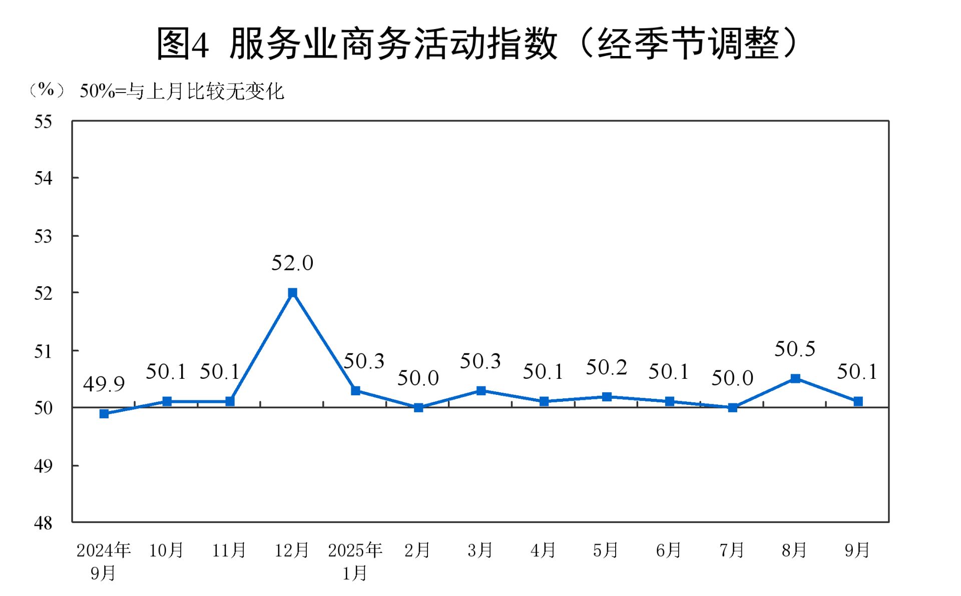 9月服务业商务活动指数为50.1% 图片来源:国家统计局