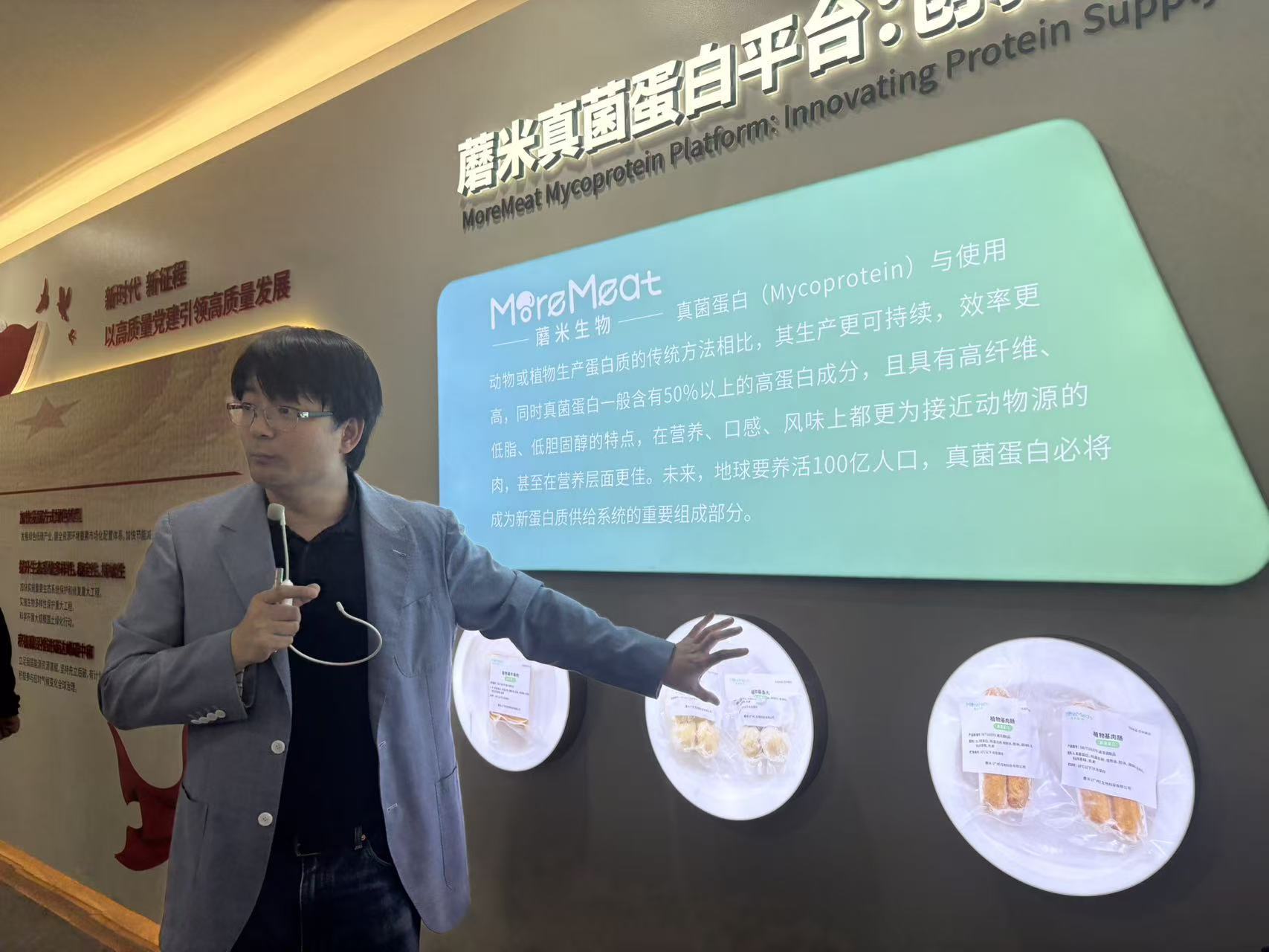 蒋先芝介绍真菌蛋白 每经记者 张蕊 摄