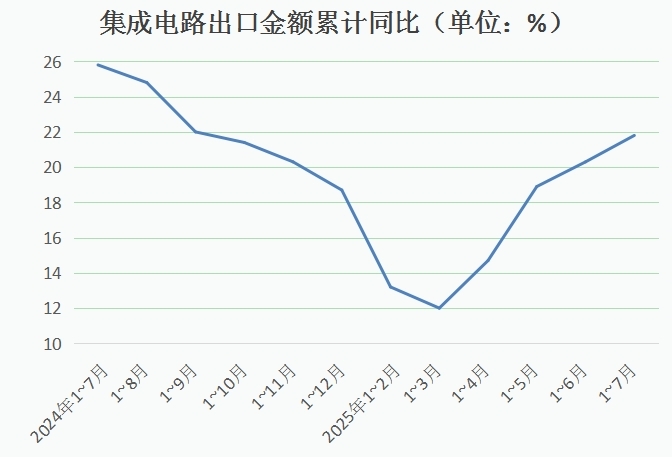 记者注意到,在去年高基数的背景下,今年前7个月,我国集成电路出口7784.5亿元,同比增长21.8%,规模创历史同期新高。