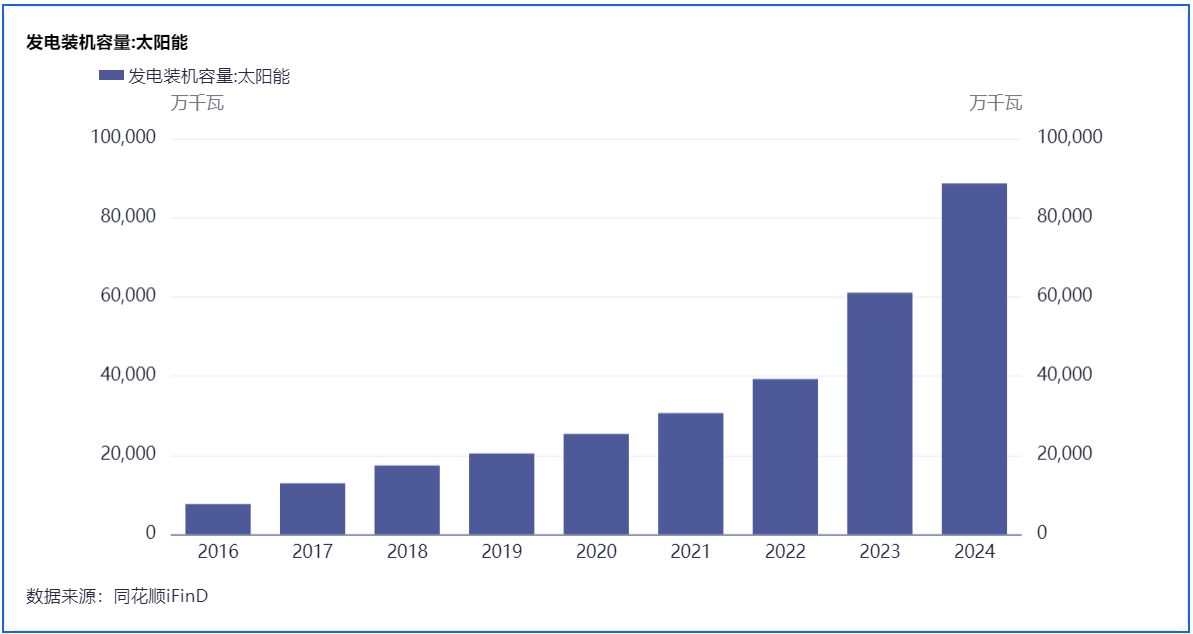 截至2024年,中国太阳能发电累计装机容量达8.9亿千瓦