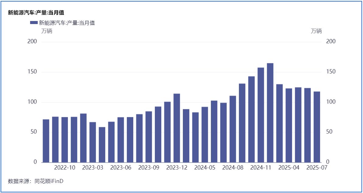 自2024年8月以来,中国月度新能源汽车产量均超过100万辆